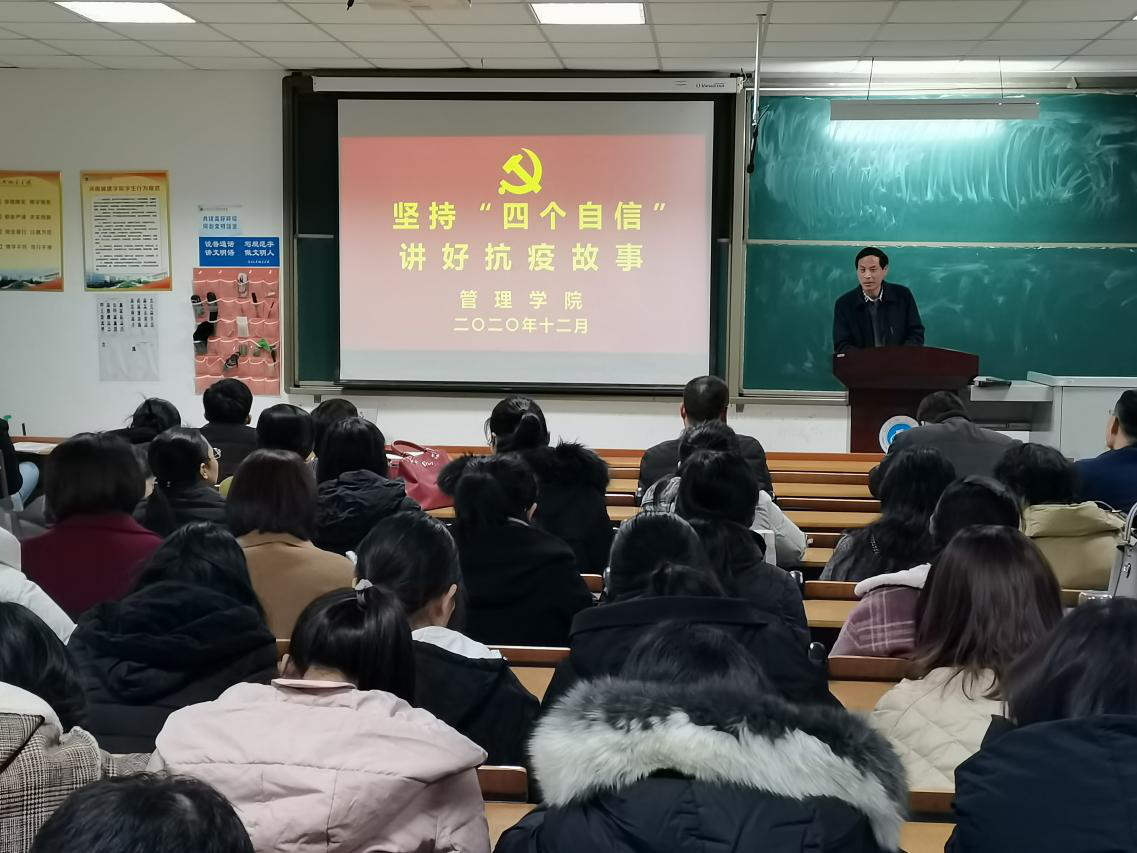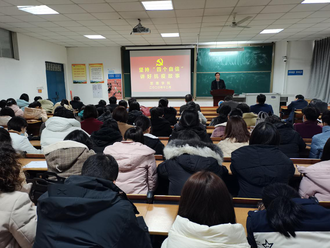 (通讯员 常小高)12月1日下午,yl6776永利集团党总支书记谢学明在学院B208教室以“坚持‘四个自信’讲好抗疫故事”为主题,向全体教师上了一堂丰富生动的党课。