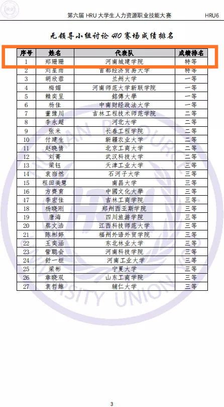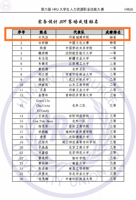 (通讯员 常小高)11月21日至22日,由中国劳动关系学院组织的第六届中国大学生人力资源职业技能(HRU)大赛暨海峡两岸人力资源职业技能大赛全国总决赛成功举办。由我校胡举华、朱志培两位老师带领,郑珊珊、米凤洁、赵奕星、李艺伟、张永冠5名学生组成的6776永利集团代表队在总决赛中荣获国家团体一等奖和两项个人特等奖。