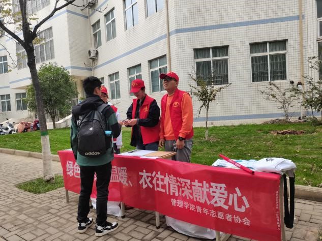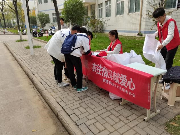 活动开始之前,各小组积极协调工作,为军训服捐赠活动做好各项准备。活动开始后,捐衣处的值班志愿者们认真负责地让前来捐赠的同学们进行信息登记,并将捐赠的衣物整理好置于麻袋中。志愿者们为感谢同学们的爱心捐赠还为积极参与捐赠活动的同学们准备了小礼品。为期两天的捐赠活动结束后,志愿者们将回收的衣物转交给平顶山市志愿者协会,让他们送给有需要的人,让资源变废为宝。捐衣车渐行渐远,本次活动也拉下了帷幕。