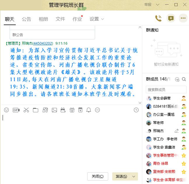 学院通过现场观看、在线观看、新媒体观看、微信QQ群集中讨论等形式,组织广大师生深入学习。管理岗教师分批次在学院B305会议室集中观看《雄关》,开展学习研讨活动。教学岗教师通过居家观看电视、看在线视频和微信视频的形式自主学习。他们在观看过程之中全神贯注、认真学习,积极在工作群中分享观看感悟,大家纷纷表示,此片真实、生动,是能影响今后课程思政教育教学改革的有力教材。