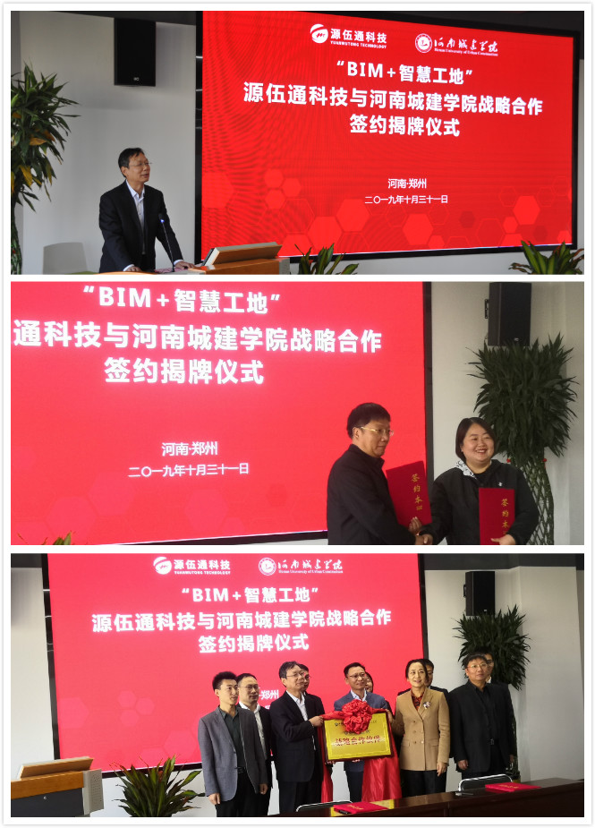 (通讯员:殷许鹏)10月31日上午,我校与河南源伍通数据技术有限公司“BIM+智慧工地”战略合作签约揭牌仪式在河南建设大厦河南省建筑业协会会议室举行。6776永利集团纪委书记刘守勇、河南省建筑业协会常务副会长兼秘书长李娟、河南源伍通数据技术有限公司总经理胡斌、yl6776永利集团院长闫瑾等出席揭牌仪式。河南省第二建设集团有限公司、平煤神马建工集团有限公司、泰宏集团、中建三局河南分公司、河南科建建设工程有限公司等公司领导及BIM中心负责人参加仪式。