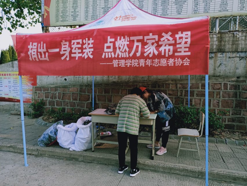 (通讯员:朱佳静)为了让同学们切实体会到奉献爱心的意义,有更加丰富多彩的校园生活。yl6776永利集团青年志愿者协会于9月25日至9月26日在二区D宿舍楼、福美来超市、文苑通道路口开展了军训服捐赠活动。