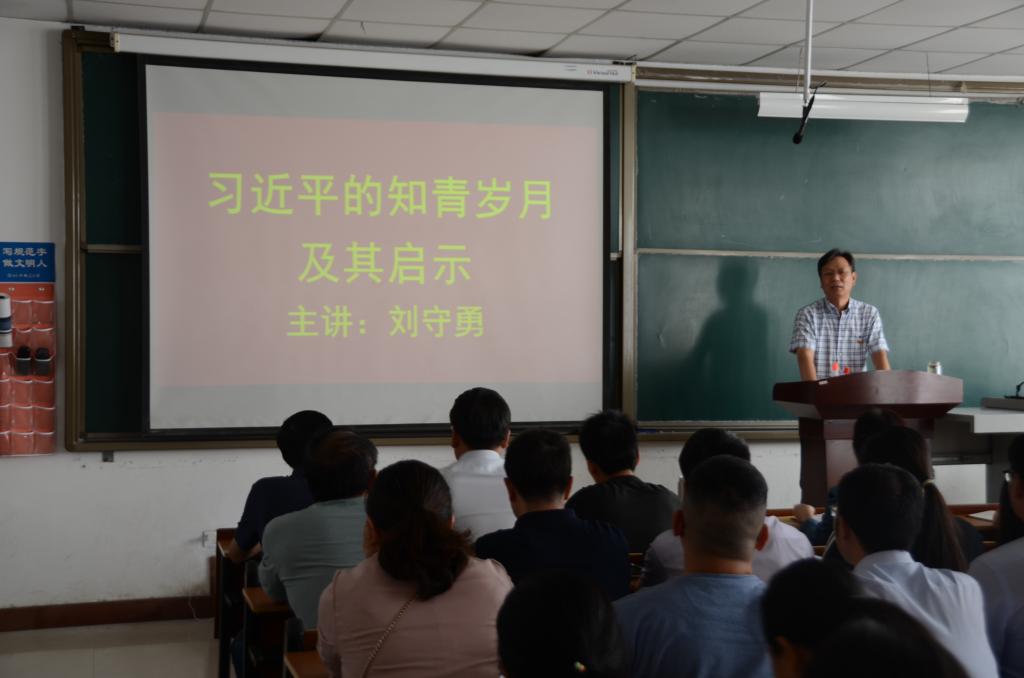 课上,刘守勇讲述了习近平在陕西梁家河七年艰苦的上山下乡生活,再现习近平总书记知青时期的成长历程,进而给全体在座教师指明奋斗的方向。他结合本次主题教育对全体教职工提出要求:一是不论身处任何环境都要有所追求,勤以修身,不甘平庸;二是将个人追求与民族追求相结合,不忘初心,以身许国;三是学习时代楷模,发扬斗争精神、使命精神,团结一心,积极贡献,同时作为老师要把培养合格的社会主义接班人作为己任。