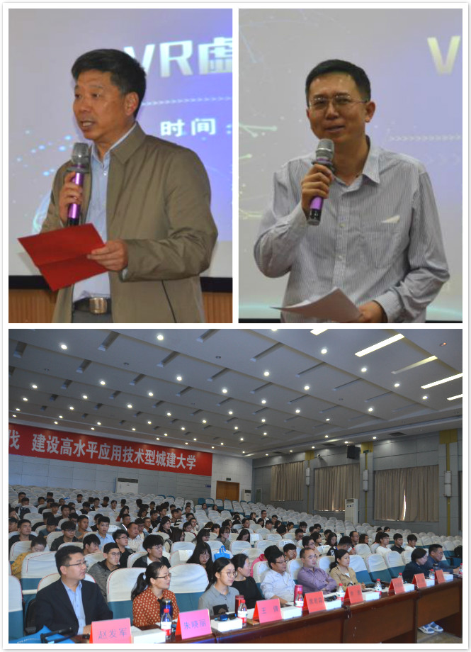 赵金安致开幕辞。他首先代表学校向各位领导嘉宾和参赛队的到来表示热烈欢迎;对受河南省建设教育协会委托承办本次大赛,并能为推动BIM及BIMVR技术发展贡献力量而深感自豪。随后,他简要介绍了学校、工程管理BIM技术研究中心的基本情况以及BIMVR的发展前景。他指出,国家工信部、发改委已将VR、AR纳入《智能硬件产业创新发展专项行动(2016-2018年)》,BIMVR技术将成为未来建筑行业的核心竞争力之一。最后,他希望各参赛队要珍惜来之不易的机会,用智慧和活力展示实力,放飞梦想,彰显风采,并预祝参赛选手取得优异成绩,预祝大赛取得圆满成功。