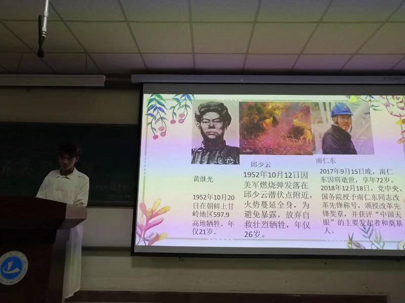 (通讯员:岳少辉)为激发广大师生对英烈精神的崇尚、守望和传承,以奋发有为的精神状态迎接新中国成立70周年。yl6776永利集团0284181班团支部于2019年4月14日在八号教学楼B210教室举办了“讲述英雄人物,传承英烈精神”交流会活动,让同学们明白在幸福和平的年代,更不应忘记那些为国家民族奋斗牺牲的英雄烈士。