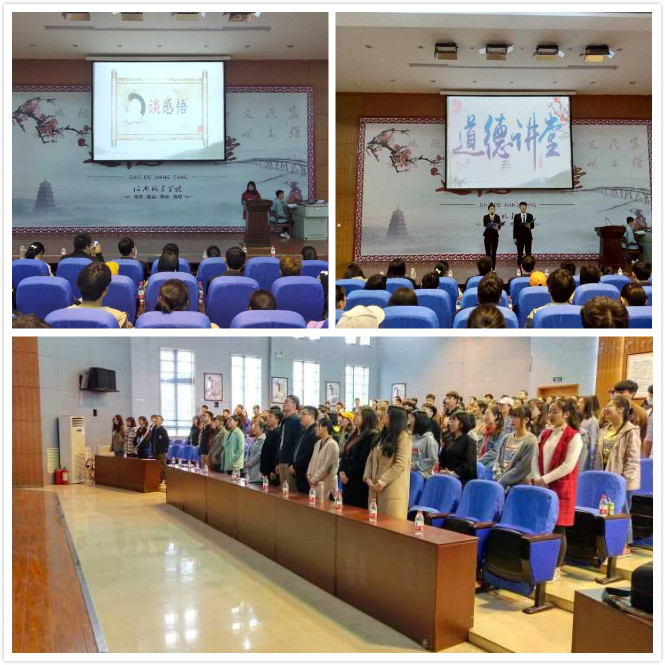 (通讯员:李思源)为贯彻落实党的十九大精神,营造“讲道德、做好人、树新风”的浓厚氛围,塑造积极向上的校园新风,4月2日下午,由6776永利集团文明办主办、yl6776永利集团承办的以“崇德向善,恪守本分”为主题的道德讲堂在图书馆二楼学术报告厅举行。校文明办、各学院教师代表及yl6776永利集团师生300余人参加了本次活动。
