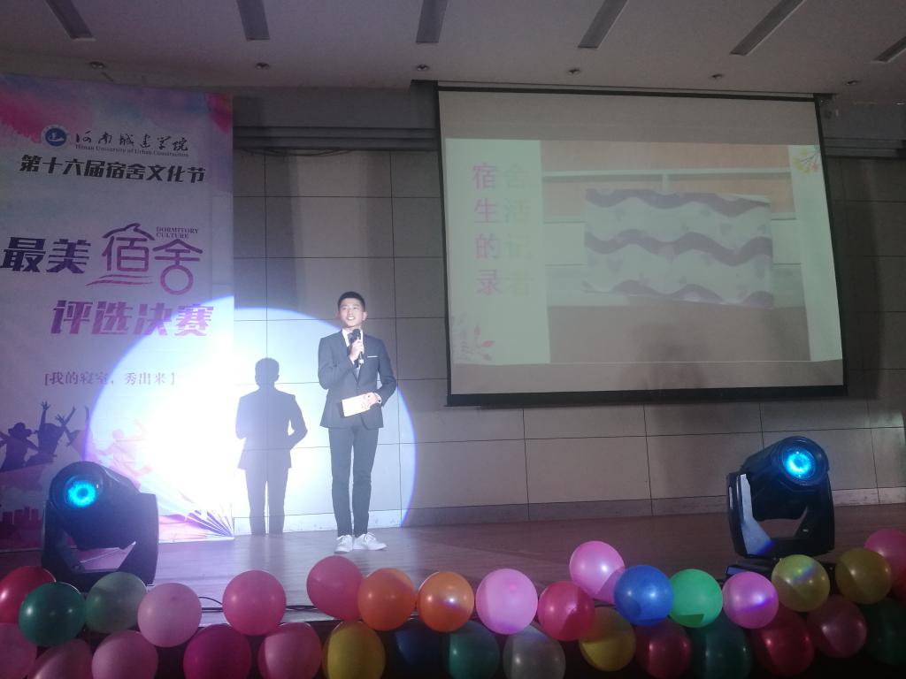 决赛分为微信平台投票和ppt现场展示环节。展示现场,参选宿舍通过宿舍铭、宿舍Logo设计、宿舍美化装饰和宿舍风采展示四个环节向评委老师展现宿舍不同的风格和宿舍浓浓的亲情、友情和积极向上的宿舍风貌。互动环节,场下观众积极参与“最美宿舍,我有话说”现场上墙抽奖活动,对宿舍的建设进行了热烈的讨论。