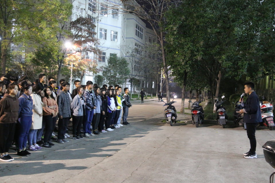 14日晚上,随着警报声的响起,各班同学在班委的指导带领下,迅速进入警备状态,有序从教室往楼下撤离。逃生时没有发生拥挤、踩踏和碰伤的事故,在两分钟之内按照预定的疏散路线,全员安全撤离到八号楼门前的安全地带。在同学们到达指定位置后,yl6776永利集团学生消防安全员葛通向同学们介绍了消防安全相关知识及灭火器的操作过程,本次消防演练活动顺利结束。