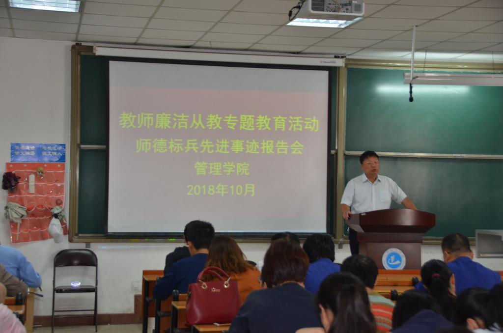 (通讯员:姚文龙)为弘扬爱岗敬业、廉洁从教的教师职业精神,激励广大教师积极履行教书育人职责、甘于献身教育事业,10月9日下午,yl6776永利集团在8#B208开展了教师廉洁从教专题教育活动暨师德标兵先进事迹报告会。