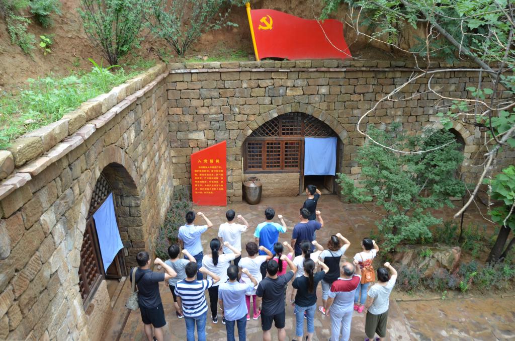 党员们参观愚公移山精神发祥地王屋山