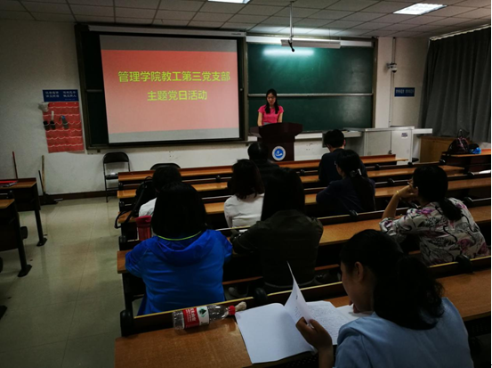 最后,郏梦飞同志表示,任何工作只有有了坚强的领导和明确的责任划分才能取得成功。高校党建工作“进公寓、进社团、进网络”的新“三进”是提高党建工作实效性、扩大覆盖面、增强影响力的新方法、新手段、新途径。作为党员教师,我们应该统一思想,从全局和讲政治的战略高度来认识推进党建工作新“三进”的必要性和紧迫性,为学院党建工作做出自己应有的贡献。