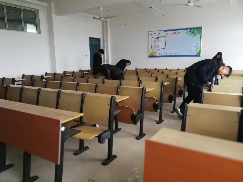 活动中,志愿者们分工明确,扫地、拖地、擦桌子等一系列清扫活动有条不紊的进行。打扫工作虽累,但志愿者们的热情却只增不减、没有任何的抱怨,很投入的打扫教室。清扫结束后,看着窗明几净的教室,整齐的桌椅,志愿者嘴角都漏出了满意笑容。