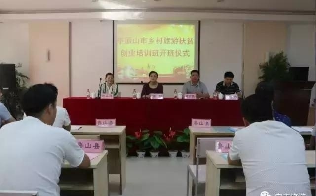 7月7日上午,由平顶山市旅游局主办的2017年全市乡村旅游扶贫创业培训班在舞钢市二郎山景区开班。来自平顶山市舞钢、鲁山、叶县、宝丰等地的120多位贫困村村民参加培训。