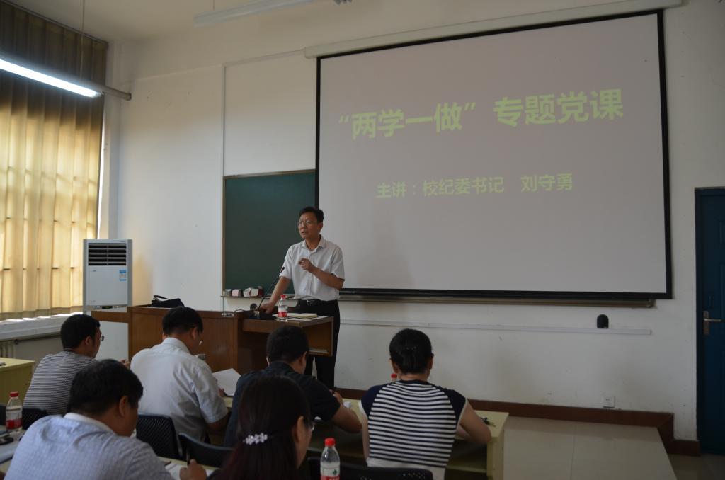 会上,刘书记围绕如何加强党性修养,保持政治定力;如何结合学校当前面临的改革发展新形势、新任务、新需求,深入推进“两学一做”学习教育常态化制度化;如何发挥党员模范带头作用,推动学校健康快速发展等问题,从三个方面深入浅出地进行了讲解。