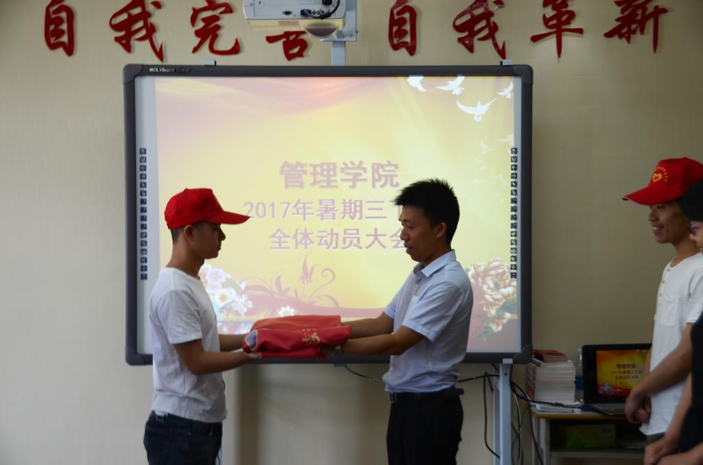 会议伊始,由副书记马斌进行动员讲话,马书记指出,“三下乡”活动对于每一位大学生来说都是一次走进社会,了解社会的机会,希望大家将社会实践作为拓展专业学习、促进理论联系实际的重要渠道,了解社情民意,努力做到思想有触动、观念有转变、素质有提升。随后,马书记对“三下乡”的四个小组分别授予锦旗并与同学们合影留念。