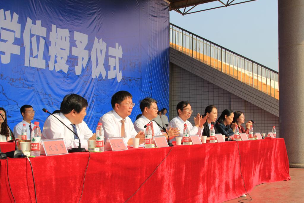 副校长杨留栓教授和副校长杨风岭教授为700余名毕业生拨苏正冠、颁发学位证书并合影留念。