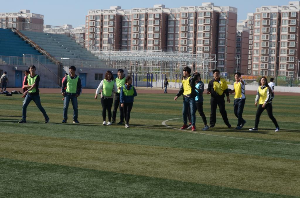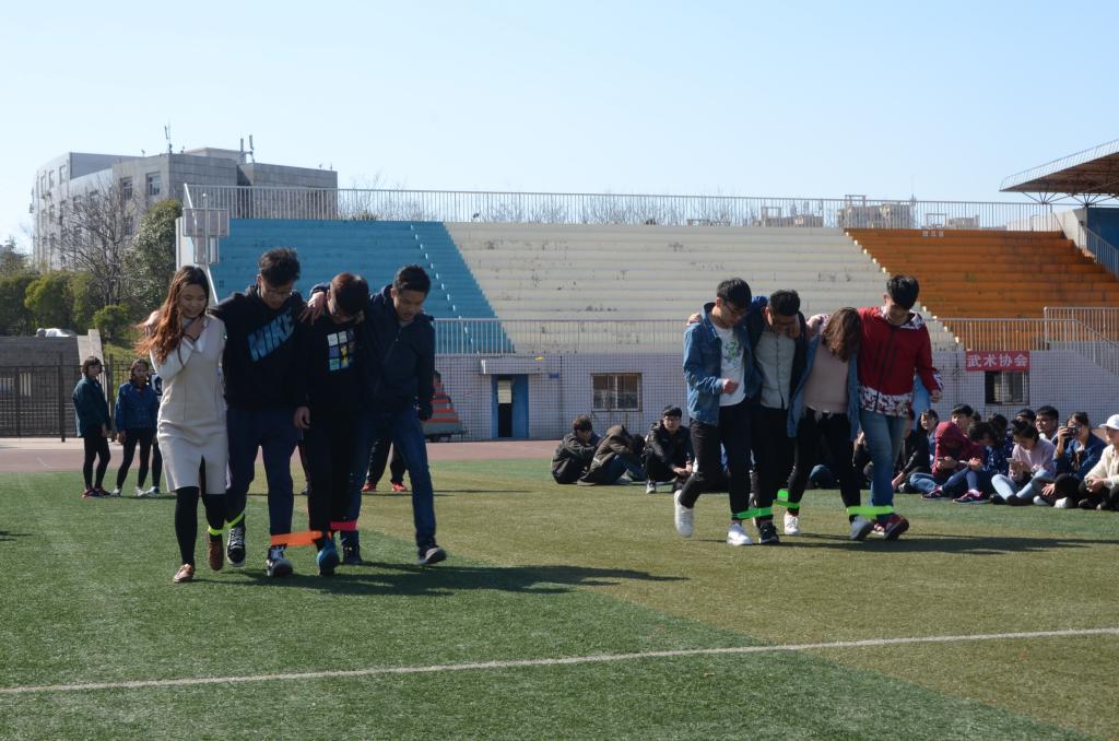 本次活动一共包括三个趣味小游戏。通过抽签分为三个小组。第一个游戏是四人五足,各小组用各自的方法完成游戏,一步一个脚印,既是伙伴之间默契度的体现,也是增进感情的有效途径。第二个游戏是“你比划,我来猜”,负责比划的同学通过丰富的肢体动作,向己方队友传达所要表达的意思,生动形象,十分有趣。第三个游戏是“背靠背夹气球”,也是十分考验队员之间的默契,能在最短时间里夹爆气球的队伍获胜,既惊心动魄,又考验团队意识。最后一个游戏是“心灵之交”,通过写小纸条列出自己的心事,交换纸条后每个同学都积极地为对方献计献策。最后一个游戏就是现在最热门的“撕名牌”了,拼的不止是体力还有智力。足球场上到处都能感受到参赛队员的速度与激情。