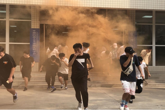 本次演练特别邀请校保卫处魏建岭老师对学院师生进行防火、防震知识培训。对遇险时要保持冷静、禁乘电梯、辨别方向、做好防烟等自救措施进行了说明,普及了遇到火灾、地震等险情的应急疏散知识,演示了如何正确使用灭火器、如何灭火等安全技能。随后,在模拟演练环节,同学们在辅导员的引导下,捂住口鼻、低姿、快速、有序地从教学楼疏散到室外指定位置,并亲自上手使用灭火器。消防安全演练取得圆满成功。