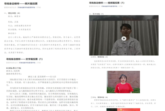 此次活动由校学生处主办,yl6776永利集团承办,共分为四个阶段:动员宣传阶段、初赛阶段、终评阶段及学习阶段。宣传动员阶段,全校各学院积极组织,通过横幅、海报、展板等形式大力宣传,激发同学们参与的积极性;初赛阶段,各学院认真组织,深入挖掘,积极推选。最终,全校收到各类推荐作品共计104份,其中视频类39个,照片类30份,文字类39份,学校对收到的作品进行线上展示及投票。5月21日,由相关职能部门、各学院老师组成的教师评审团及学生代表组成的学生参评团在8号楼B305对参赛作品进行了现场评审,在场的评审人员及学生对作品所传达出来的我校学子勤勉刻苦、坚持不懈的精神深深感动,学生们也纷纷表示,要以他们为榜样,努力看齐。