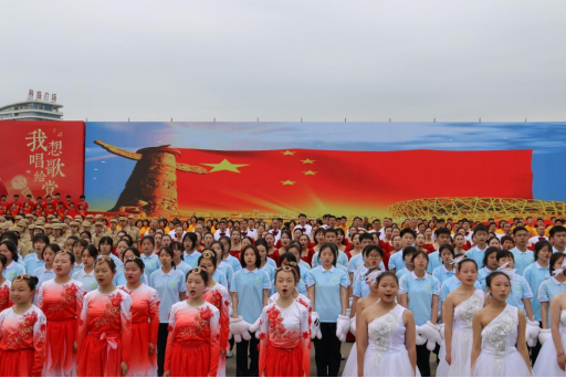 在启动仪式上,现场共分为八大方阵,依次带来接力红歌传唱表演。我院学子以饱满的精神和嘹亮的歌声积极参与其中,充分展现了城建学子积极向上的精神面貌和拳拳爱国心。最后,全场共唱“没有共产党就没有新中国”,大家用嘹亮的歌声向党和祖国“告白”。