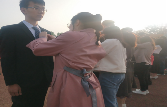 仪式在嘹亮的国歌声中拉开帷幕。首先,由学生代表围绕“建党100周年”和“五四”运动进行了慷慨激昂的演讲。随后,学生代表迎接团旗,各学院团总支书记为优秀团员代表佩戴团徽。我院6位学生代表身着正装,庄严的接受老师为其佩戴团徽,充分展现了我院学生积极向上的精神面貌。紧接着,由学生代表带领大家庄严宣誓,重温入团誓词。最后,全体学生合唱团歌,升旗仪式结束。