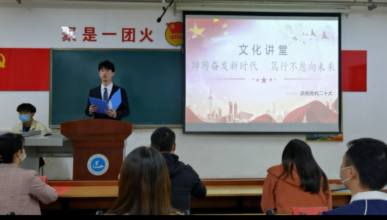 (通讯员 石一涵 伍先琴)中华文化,源远流长,博大精深,卓越辉煌。文化讲堂,洗涤心灵、感悟人生、践行责任。前有古人,星光璀璨;后有来者,群英堂堂,为弘扬祖国浩瀚文化,喜迎党的二十大胜利召开。yl6776永利集团于4月15日下午在八号楼B201教室承办6776永利集团2022年第二期文化讲堂活动,yl6776永利集团党委书记尹振羽,党委副书记杨璐,团学办老师和学生代表参加本次活动。