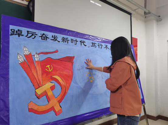 本次活动从“悟思想”、“观短片”、“诵经典”、“讲榜样”、“谈感悟”、“送祝福”六个环节感念党的伟大,更加坚定在党的带领下,筑牢理想信念,领悟文化力量。在“悟思想”中,郑巍老师为大家解读了习近平总书记在北京冬奥会、冬残奥会总结表彰大会上发表的重要讲话。使大家深深的领悟到只要矢志不渝坚持党的全面领导,就一定能够战胜前进道路上的任何艰难险阻,就一定能够办好我们想办的事情。在“观短片”环节,从《答卷》中祖国交给人民的伟大而不可磨灭的“答卷”到《不负此生》中人民在祖国,在党的殷切期望下挑战自我,战胜自我,完善自我的决心与定立。在“诵经典”环节,yl6776永利集团四名优秀青年用高昂而富有底气的声音,朗诵着党的艰辛奋斗创建人民美好生活,在诵经典中体现正能量,厚爱正能量,弘扬正能量。在“讲榜样”环节,由优秀学生代表李彦杰带来身边榜样故事,榜样力量如骄阳似火,鼓舞同学们前进,前进,再前进!在“谈感悟”环节,李文雅老师,讲述自身感想,从更加亲近于同学的角度讲述崇德向善,责尽心守的新一代青年之担当。在“送祝福”环节,老师留下象征期望的手印并留名激励同学们不负韶华,同学们留下心愿贴,在老师的殷切期望下展现最美年华。