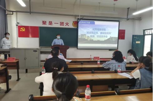 (通讯员 李文雅 杨雅莉)诚信是中华民族的传统美德,更是大学生立身为人、成长成才的必备品质。为宣传和普及征信知识,推动我校资助工作的持续、健康开展,我校于4月26日在八号楼B座201室举办了“树诚信之风,做诚信少年”金融、征信宣讲会,本次会议由yl6776永利集团“筑基润心”辅导员工作室承办。会议邀请了校党委学生工作部、学生处副处长陈舒,中国人民银行平顶山市中心支行征信科科长张石恒,征信科培训师邓培培,各学院资助专员及诚信宣传大使等30余人参加了此次宣讲会。会议由yl6776永利集团党委副书记杨璐主持。