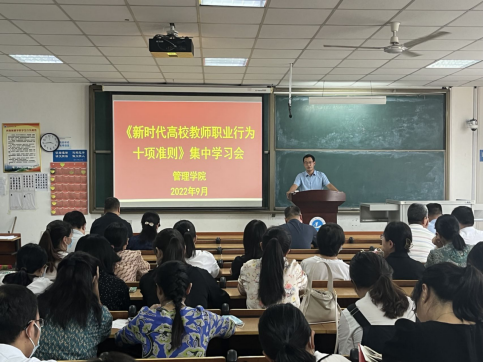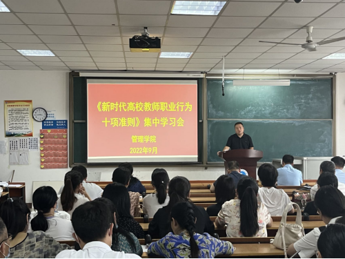 副院长王炳刚领学了《新时代高校教师职业行为十项准则》(以下简称“十项准则”),并对准则中禁行性规定做出了重点解读。