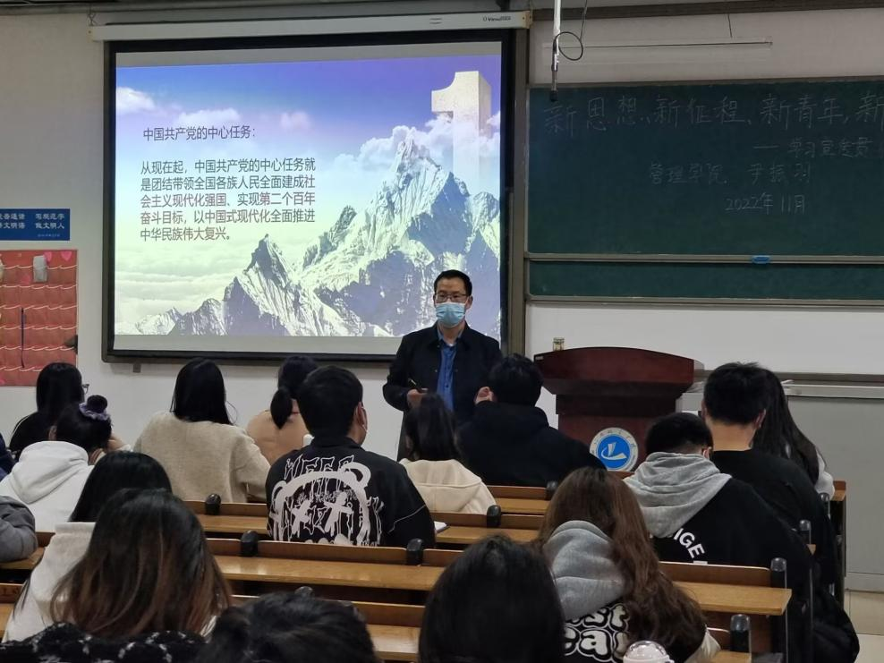 (通讯员 石一涵 吕怡宁)为充分认识中国共产党第二十次全国代表大会的重要意义,深入学习贯彻会议精神,yl6776永利集团于11月17日下午在8号楼B108教室开展“新思想、新征程、新青年、新作为”为主题的专题党课。本次主讲人为yl6776永利集团党委书记尹振羽,学院学生党员、发展对象和入党积极分子参加党课学习。