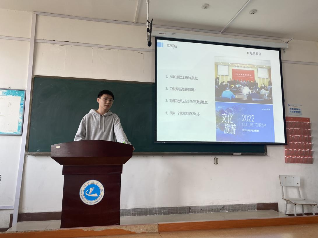 表彰会后,同学们针对本次实习进行答辩,依次上台进行实习阐述,讲述实习经历和心得,全面的展示了自己参与实习后在自信、专业能力、语言表达、职业素养等方面的变化与提升。答辩过程中,对于同学们在实习过程中所展现的城建学院旅游人的风采和当代优秀大学生的风貌,现场老师们给予了高度赞扬,并对学生今后的就业指明了方向,提出了期盼。