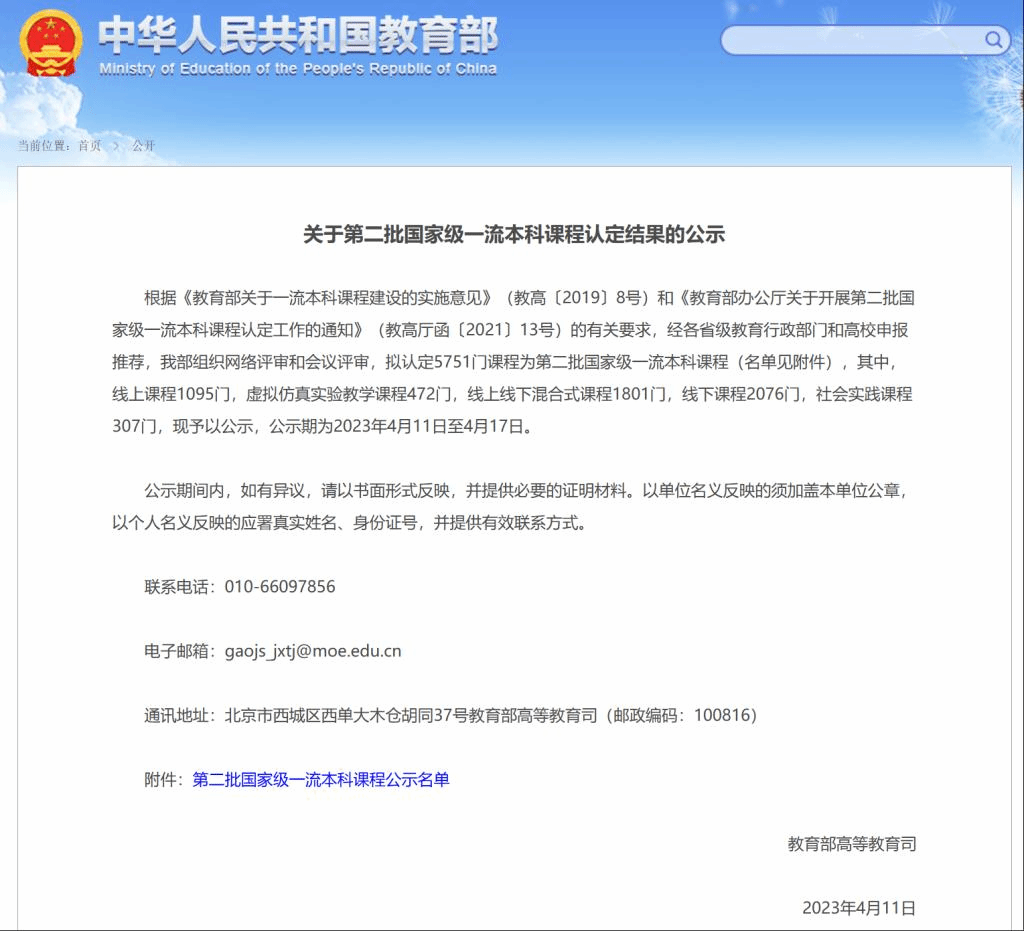 (通讯员 董晓峰)2023年4月11日,教育部发布了《关于第二批国家级一流本科课程认定结果的公示》,我院王红平教授主持的线上线下混合式课程《建筑工程计量与计价》入选第二批国家级一流本科课程,实现了yl6776永利集团在一流本科课程建设方面的新突破。