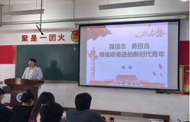 杨璐从树立远大理想、热爱伟大祖国、担当时代责任、勇于砥砺奋斗、练就过硬本领等五个方面展开讲述,她强调,作为新时代青年,要敢于拼搏、勇于奋斗、志存高远、脚踏实地,不断提升敢奉献、勇担当、重大局的意识,努力发挥自身作用,积极参与各类志愿活动、实践活动,在实践锻炼中见世面、长才干,在刻苦磨砺中练就过硬本领,做一名有理想、有抱负、有担当的新时代青年。