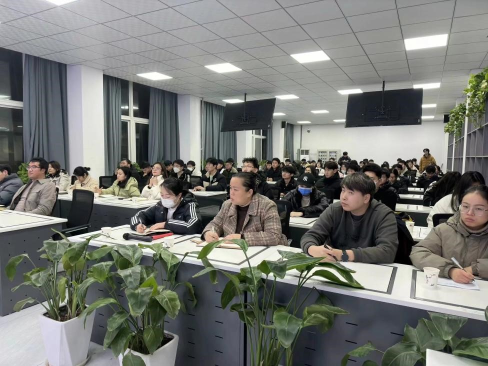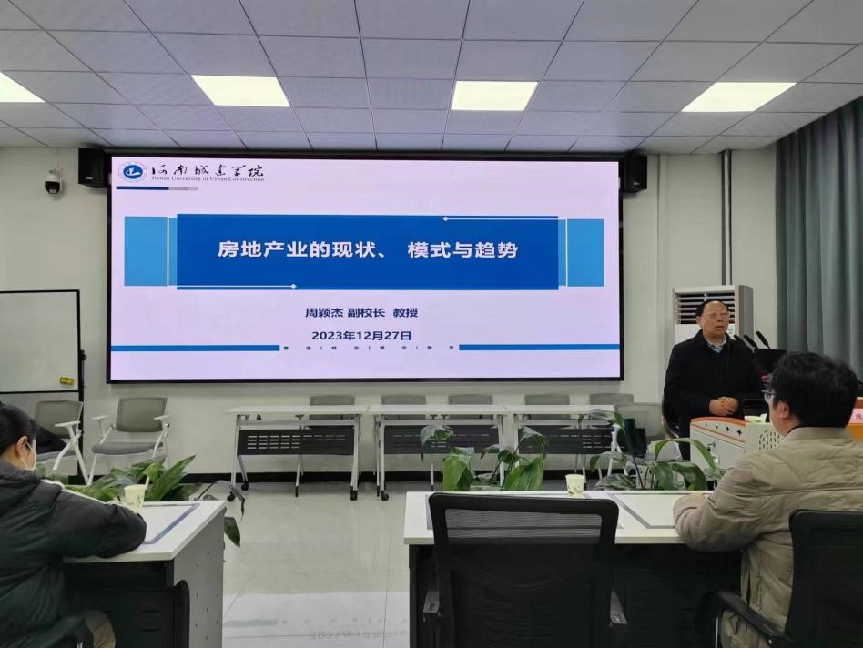 周颖杰从认真贯彻落实习近平总书记关于“房子是用来住的,不是用来炒的”的重要论述出发,结合我校城建特色、相关专业建设和学生就业相关问题,从房地产业的地位作用、典型经验、我国房地产发展重点这三个部分展开讲解。