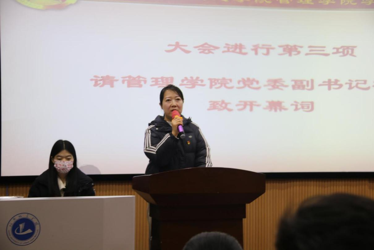 大会在全体师生齐唱国歌中开幕。首先,由全体人员观看第十四届学生会换届视频,回顾上一学年我院学生工作的历程及所获荣誉。接着,杨璐致大会开幕词,她向莅临本次大会的各位老师和同学表示热烈的欢迎和诚挚的感谢,她既肯定了第十四届学生会全体学生干部付出的辛苦努力和取得的成绩,也对继任的第十五届学生会干部提出了希望和要求。