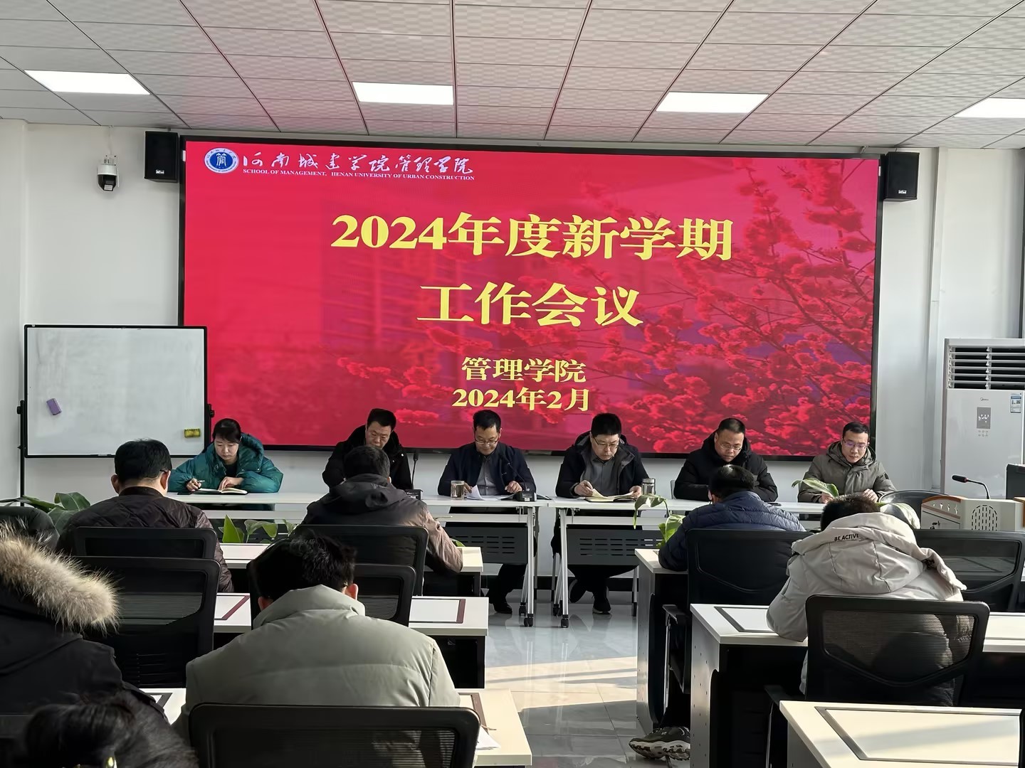 会上,尹振羽传达了校党委书记、校长范晓伟在校2024年度工作会议上的讲话精神;学院院长霍松涛对2024年度学院十一项重点工作进行布置安排,并提出具体要求,以高质量、高标准完成各项工作,做出实效,做出特色;随后,学院各分管领导分别就学院近期工作进行了部署和安排。