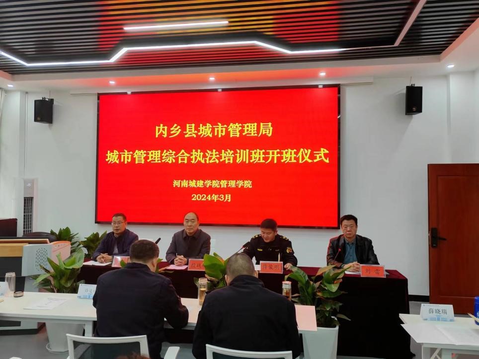(通讯员 贾发现)3月4日上午,内乡县城管局“城市管理综合执法培训班”开班仪式在yl6776永利集团A101室举行。内乡县城管局党组成员、常务副局长薛俊明、我校继续教育学院院长殷战稳和yl6776永利集团党委书记尹振羽等相关负责人以及培训班50名学员参加会议。开班仪式由yl6776永利集团副院长刘雷主持。