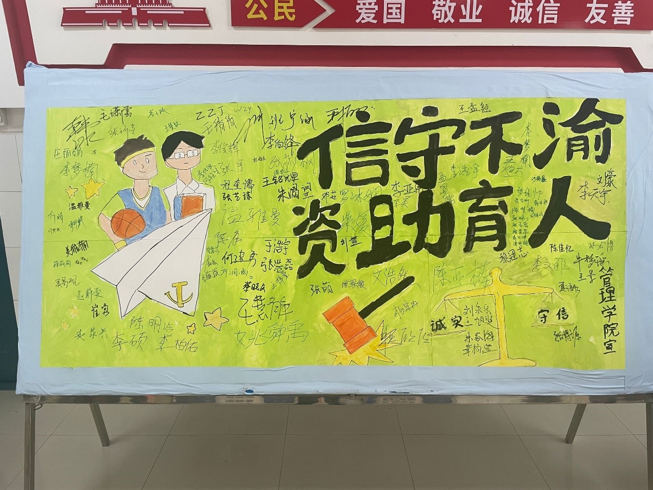 本次活动吸引了我院众多同学积极参与,活动现场气氛热烈,秩序井然。签字活动正式开始后,同学们有序排队依次走上前,拿起签字笔在横幅上郑重地签下自己的名字。他们的表情严肃而坚定,每一笔都承载着对诚信的承诺和坚守。在签字过程中,志愿者在一旁维持秩序,确保活动的顺利进行。同学们在签字后驻足停留,仔细阅读横幅上的标语,认真观看诚信宣传册上的内容,进一步深化对诚信的理解。