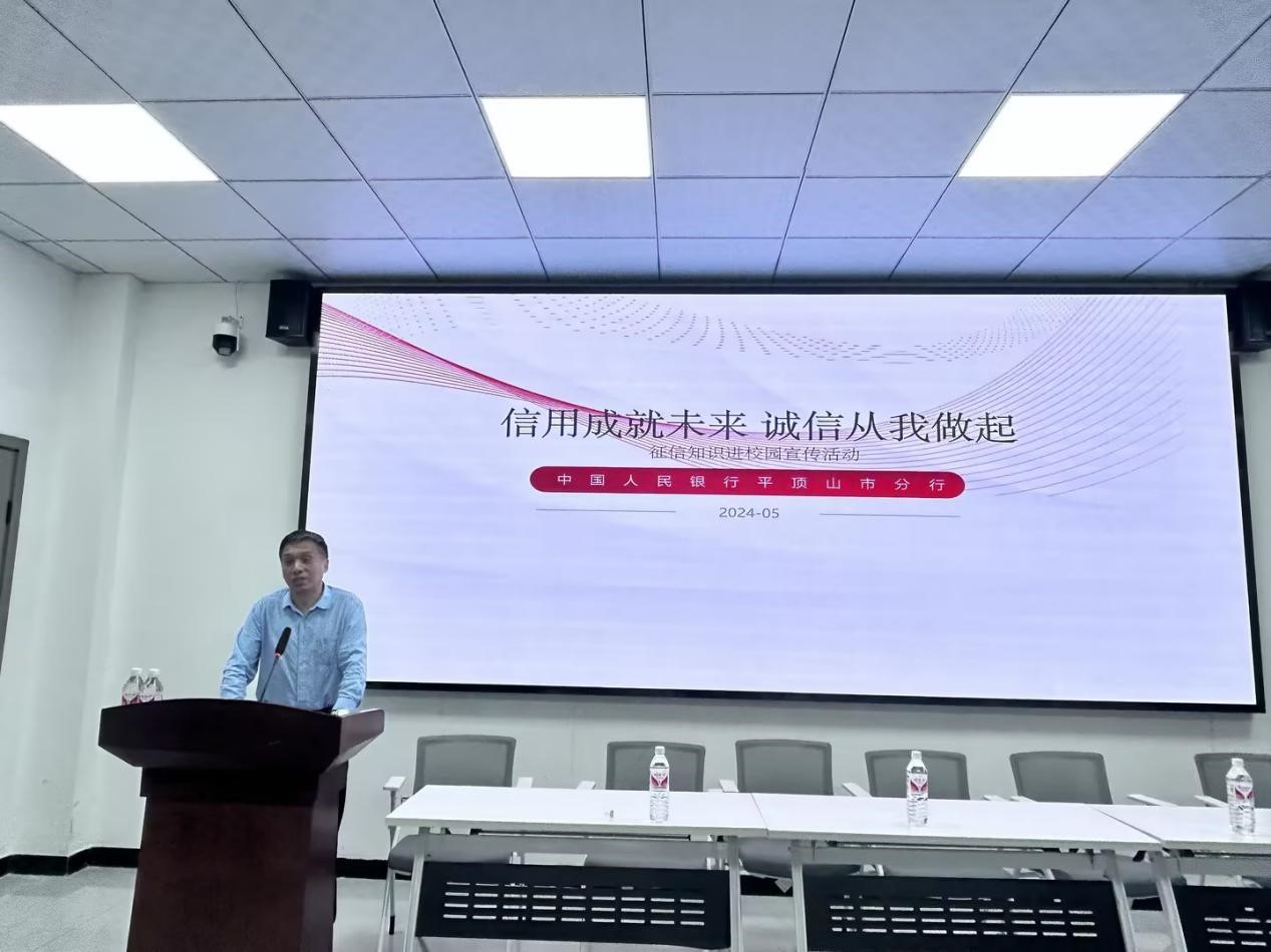 (通讯员 王倩倩)为推进金融知识纳入国民教育工作,促进金融、征信知识与诚信文化在校园的传播与广泛普及,提升在校大学生金融素养与诚信实践能力,提升青少年对征信知识的认知和了解,5月7日,由学生资助中心主办,邀请中国人民银行平顶山分行征信管理科科长张石恒在我校8号楼A208开展了“征信活动进校园”主题宣讲活动。校学生资助管理中心主任王宏,资助管理中心李素锦、宋伟老师,各学院党委副书记、团学办主任、资助专干以及辅导员老师参加此次主题宣讲活动。