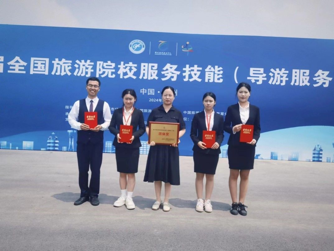 (通讯员 龙丹)5月23日-26日,由文化和旅游部市场管理司、中国旅游协会指导,中国旅游协会旅游教育分会主办,郑州旅游职业学院承办的第十四届全国旅游院校服务技能(导游服务)大赛在郑州举行。我校yl6776永利集团孙贝贝、陈月容、刘雪梅(英文组)、外国语学院刘佳浩(英文组)等四名参赛选手经过理论考核、导游现场和专题讲解、才艺展示等多个环节的激烈角逐,最终荣获团体一等奖,至此我校已连续四届获得团体一等奖的殊荣。