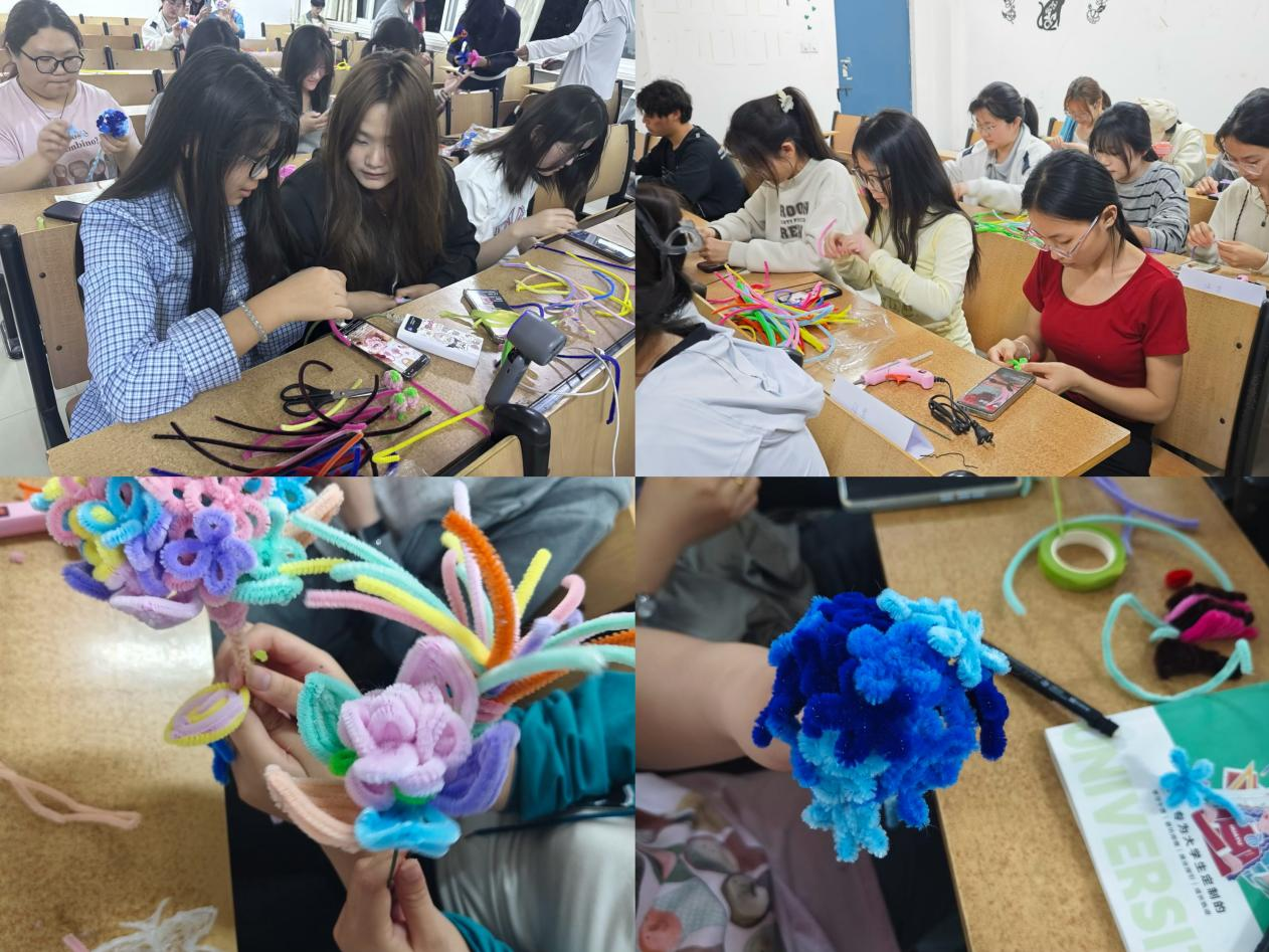 此次“与春风赴一场‘约绘’”手工创作活动,不仅锻炼了学生的动手能力和创新思维,更使他们在专注创作的过程中实现了压力的释放,实现了艺术疗愈的效果。扭扭棒看似简单,实则需要耐心和巧思。活动负责人陈同学表示,“四月是心理调适的关键期,我们希望通过这种轻松有趣的形式,帮助学生在创作过程中实现自我觉察和情绪疏导”。