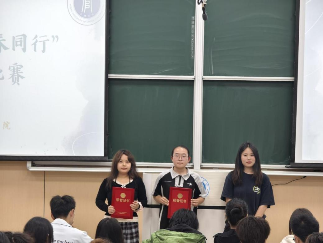 随着最后一位选手的精彩诵读余音渐落,本次的“诗韵新声 青春同行”诗歌朗诵比赛也到了最后评比颁奖环节,评委们在经过激烈讨论后,最终评选了三等奖两名,二等奖一名,一等奖一名。