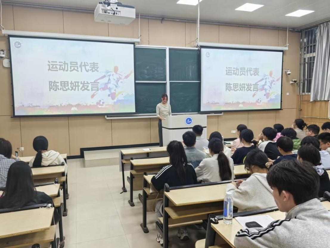 随后,由运动员代表陈思妍发言,她表示大家已经做好充分准备,用拼搏诠释体育精神,用汗水书写青春华章,同时也呼吁全体运动员在赛场上全力以赴,为学院添彩。