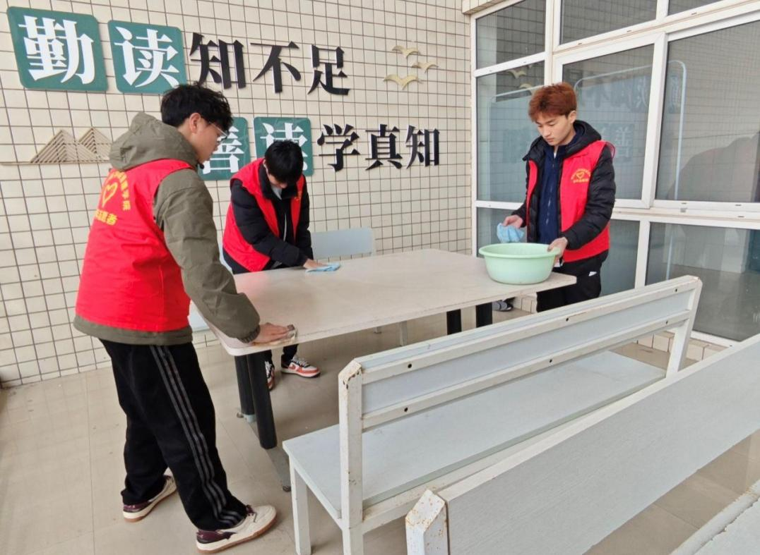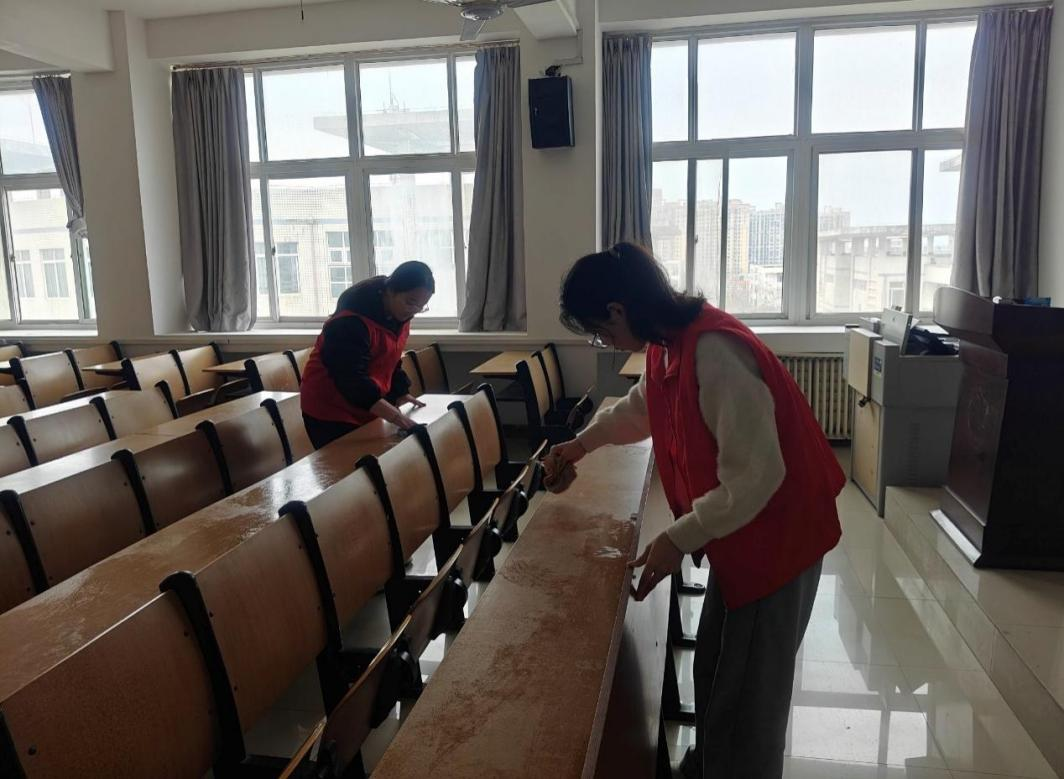 活动前,志愿者们提前抵达现场,完成工具分配与任务分组。活动中,大家分工明确、配合默契:黑板字迹被仔细擦拭,课桌积尘彻底清理,抽屉与地面的杂物逐一清除。经过两小时的集中清扫,教学楼教室窗明几净、焕然一新,为师生营造出更加舒适的学习空间。活动结束后,志愿者们有序归置清洁工具,展现出自律高效的团队作风。