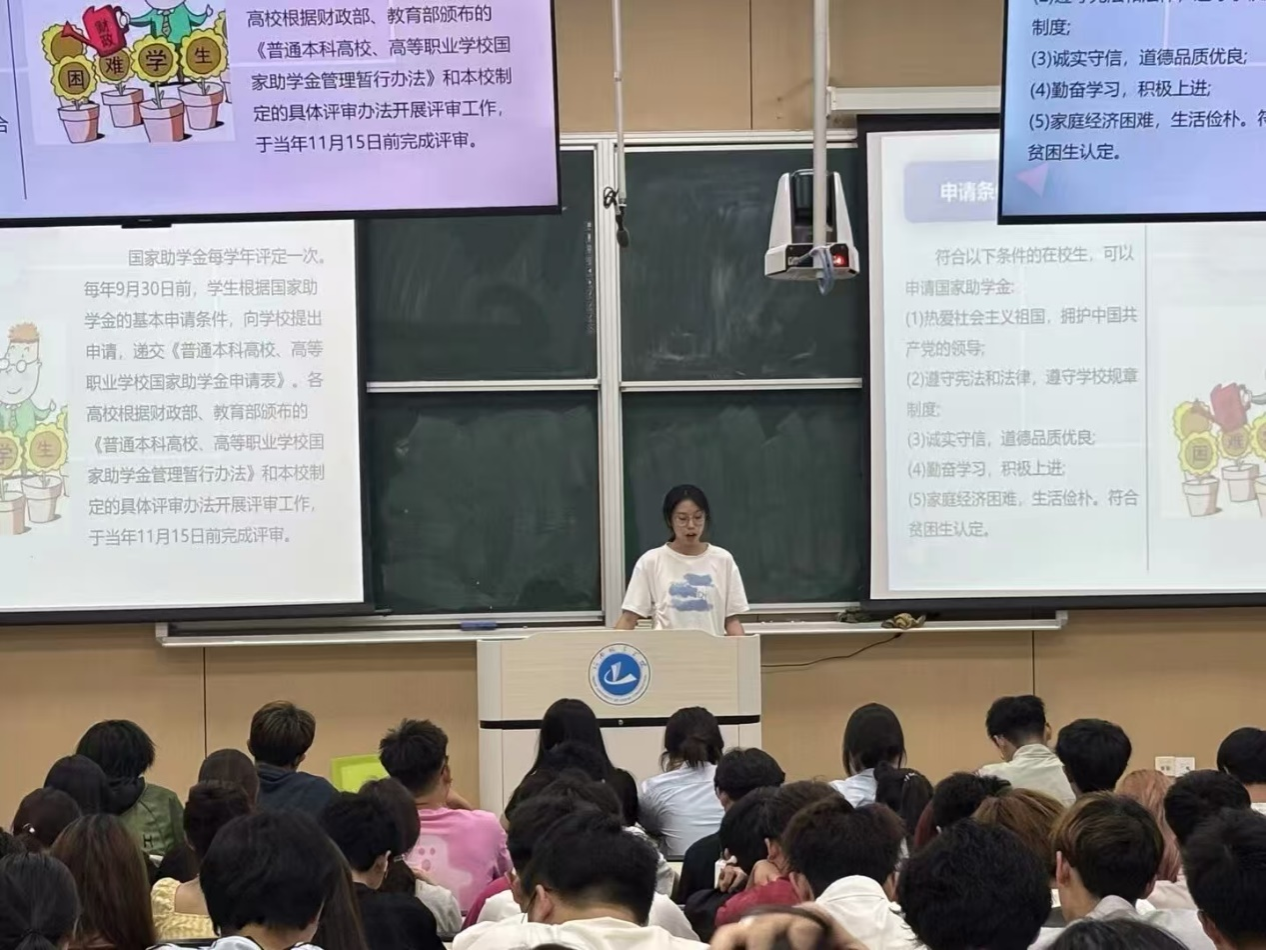 本次资助政策宣讲会以政策精准传导为枢纽,以立德树人根本任务为导向,构建起政策解读与需求响应的双向互动机制,不仅系统性解答了学生在资助申请流程、评定标准等方面的困惑,更通过典型案例激励学生成长成才,激活学生自主发展的内驱力,形成“解困—育人—成才—回馈”的良性循环,确保资助政策能够精准触达每一位有需要的学生,让每一位学生都能在公平的教育环境中茁壮成长。