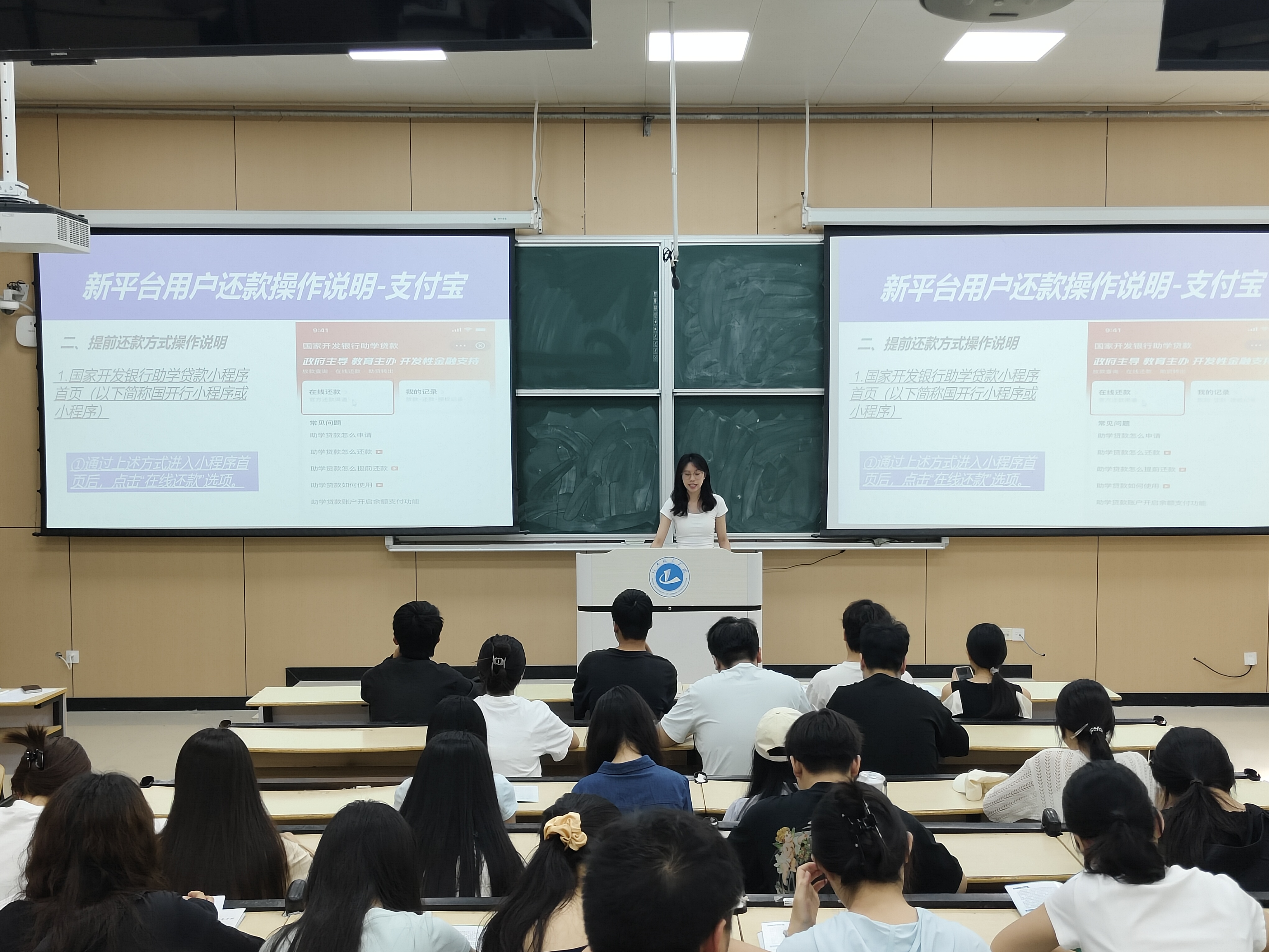 宣讲会伊始,我院资助专员王倩倩老师以“诚信是立身之本”为切入点,结合诚信典故与校园案例,阐释诚信在学术、社交、生活中的重要意义,引导学生树立正确价值观。随后就国家助学贷款还款流程、贷款还款方式、还款时间节点、征信问题、延期还款最新政策五方面详细讲解了国家助学贷款毕业确认的具体流程及注意事项。同时,着重警示逾期还款将导致高额罚息、征信受损,影响购房、求职等严重后果。