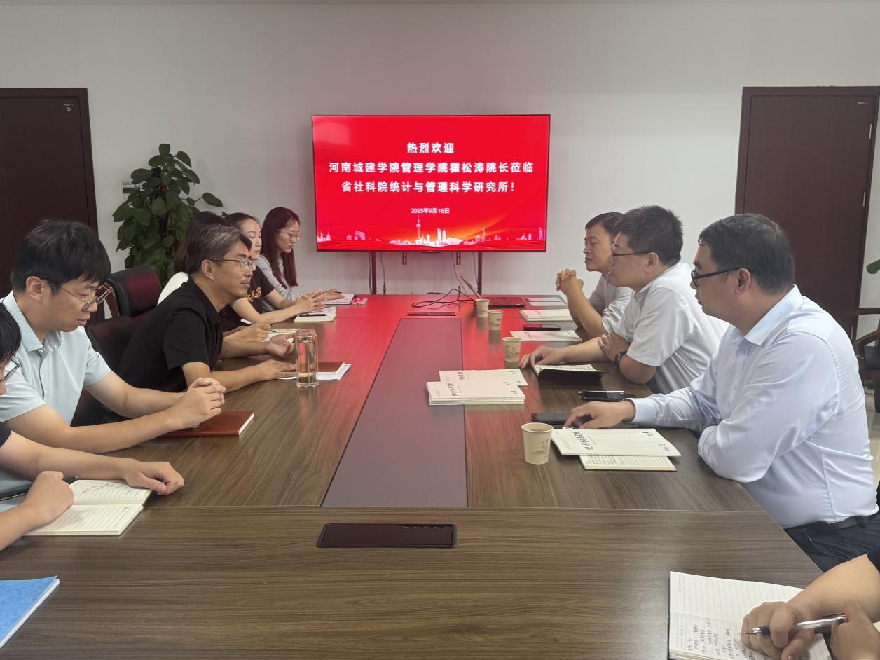 (通讯员 介朝洋)9月16日,我院院长霍松涛一行到访河南省社会科学院,与统计与管理科学研究所所长杨兰桥双方围绕贯彻落实《关于实施科教融汇协同育人项目的通知》精神,就推进协同育人、科研合作等事宜进行深入交流与洽谈。