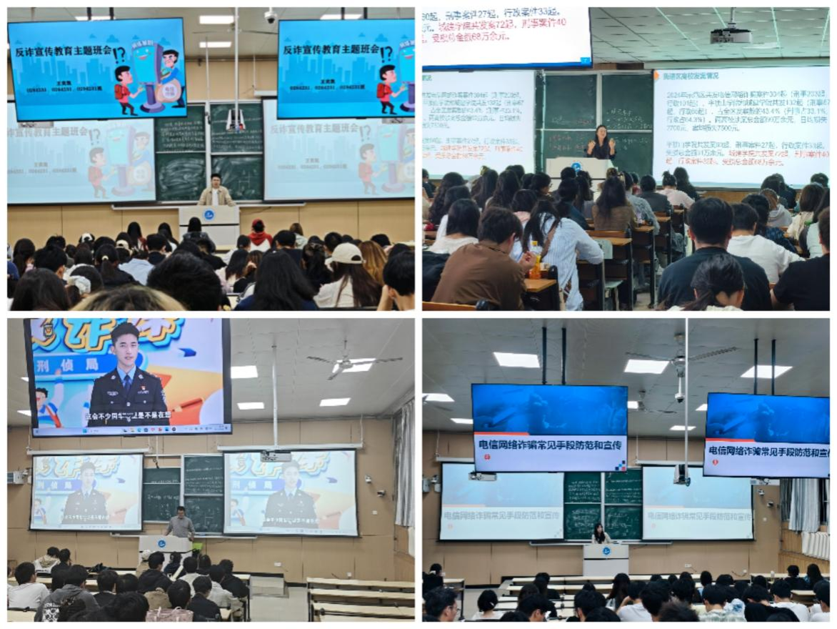 在学院辅导员例会上,学院党委副书记杨璐明确要求将反诈宣传列为开学重点工作,全体辅导员结合班级情况开展一系列反诈活动,从组织、宣讲到反馈形成闭环,确保覆盖每一名学生。班级活动全覆盖,反诈知识入人心。