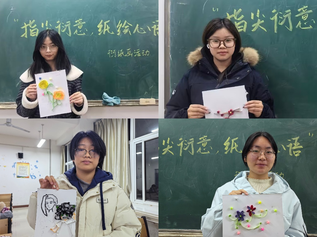 活动中,同学们或独立构思,或协作交流,在衍纸艺术中沉浸体验。大家通过卷、折、粘、拼等手法,将彩色纸条转化为丰富造型:有的以自然为灵感,制作花朵与蝴蝶;有的尝试几何拼接,构建抽象图案;还有的运用渐变色彩,表达个性创意。在轻松融洽的氛围中,同学们互相交流创作方法,一张张卡纸逐渐成为独具特色的衍纸作品。活动最后,大家纷纷展示成品、分享心得,现场洋溢着成就感与喜悦。多彩的纸卷不仅定格了创意瞬间,更搭建起彼此沟通的桥梁。