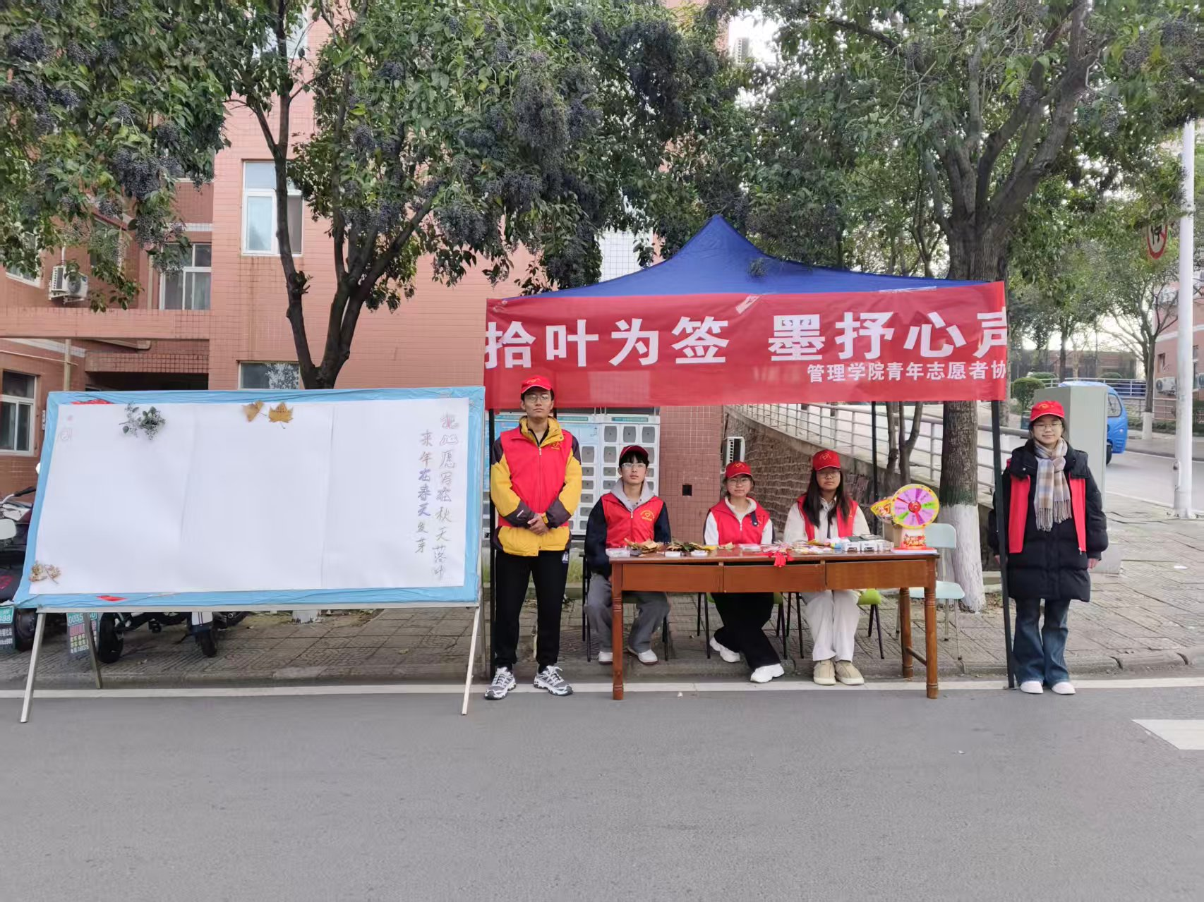 (通讯员 王奕凯 石润格)为丰富师生校园文化生活、涵养人文情怀、提升艺术修养,2025年11月22日,yl6776永利集团青年志愿者协会在学校布芳园与梅香园门口联合开展“拾叶为签,墨抒心声”主题活动,为秋日校园增添了一抹灵动的文化色彩。